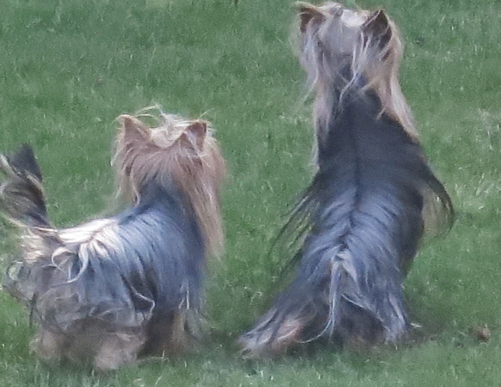 Ihanat kesäpojat! Roope pysyy aika hyvin tuossa meidän pihalla, mutta Rolle meinaa aina tilaisuuden tullen livahtaa tuonne vastapäisen naapurin pihaan. Täytyy yrittää alkaa kovasti kouluttamaan sitä, että se pysyis omassa pihassa....millähän keinolla se onnistuisi?